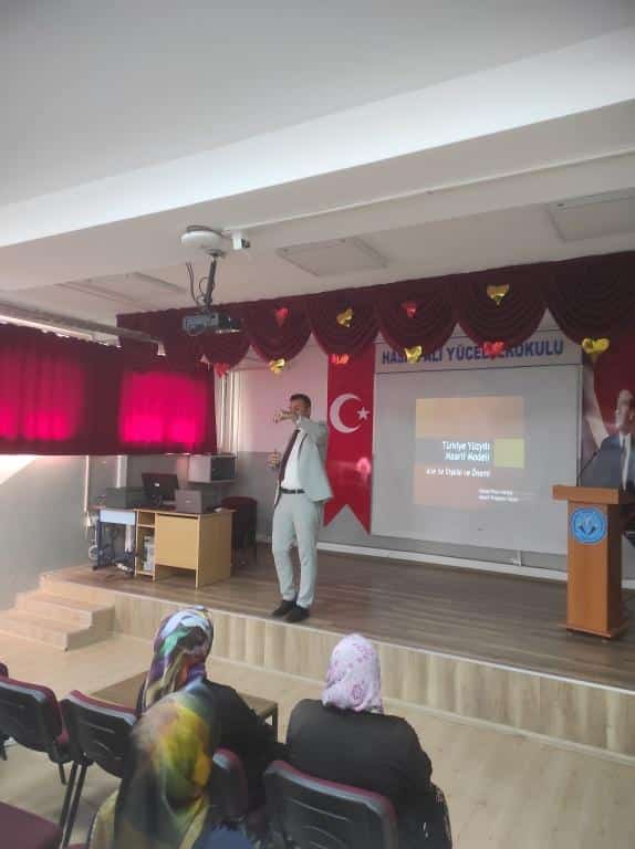 Hasan Ali Yücel ilkokulu konferans salonu, geleceğin eğitim vizyonunu velilerle buluşturan önemli bir etkinliğe ev sahipliği yaptı. Okulumuzun değerli öğretmeni Osman Emre DELİCE tarafından verilen "Türkiye Yüzyılı Maarif Modeli" tanıtım konferansı, velilerimizden yoğun ilgi gördü.