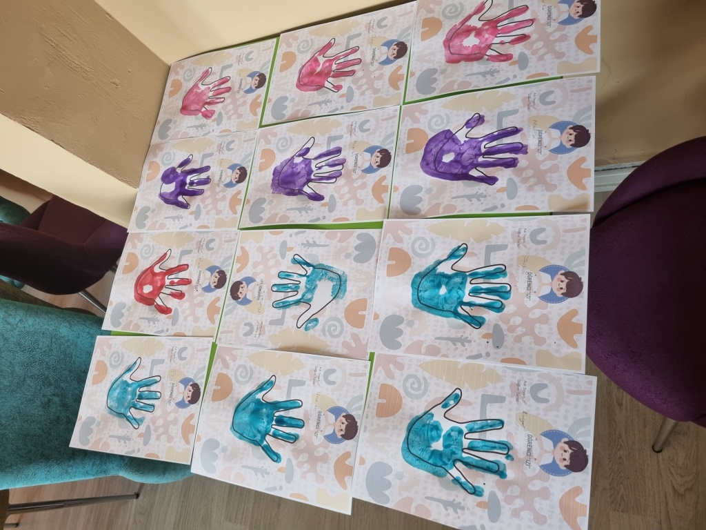 Formlarda ayrılan bölüme akrilik boyalarla el baskısı yapan öğrenciler, baskının altına da geleceğe dair kısa bir not yazarak duygu ve düşüncelerini ifade ettiler. Her öğrencinin çalışmasına, öğretmenleri tarafından yazılan özel bir not da eklendi.