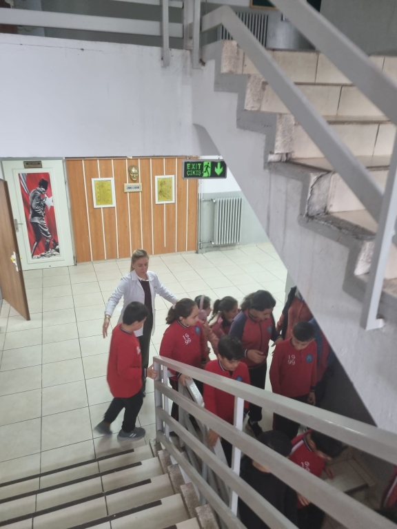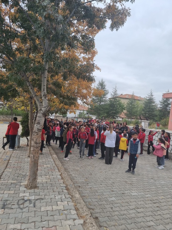 Tatbikat sırasında öğrenciler, deprem anında nasıl davranmaları gerektiğini uygulamalı olarak öğrendi. “Çök, kapan, tutun” hareketiyle başlayan etkinlikte, öğrenciler daha sonra düzenli bir şekilde sınıflardan tahliye edilerek güvenli toplanma alanına geçti.